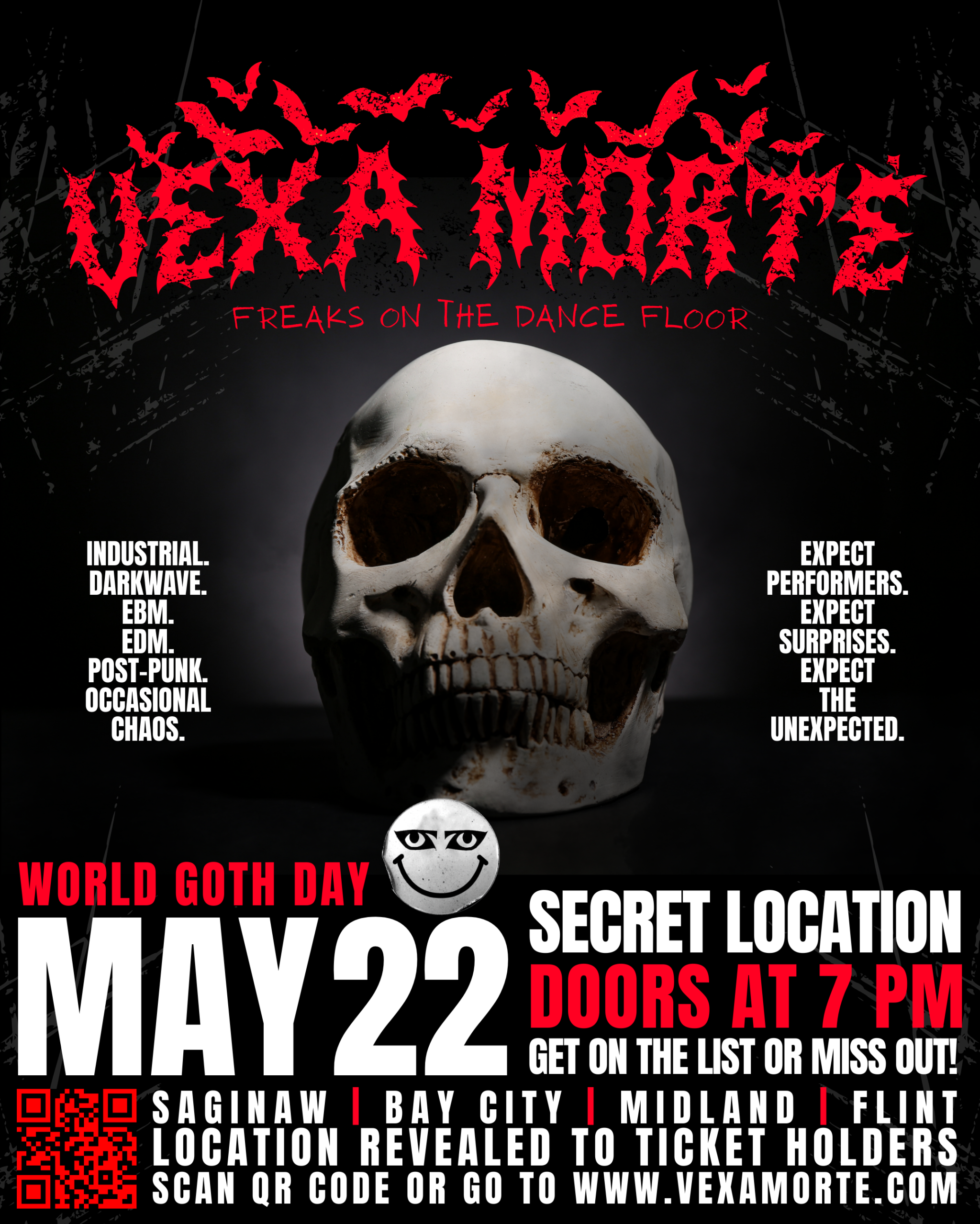 Vexa Morté is a new underground dance gathering for the goth, industrial, and alternative communities of Saginaw, Bay City, Midland, and Flint.